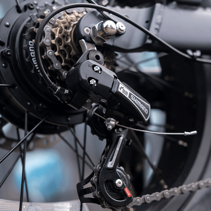 O câmbio Shimano de 7 velocidades da MUV Rebel proporciona mudanças de marchas suaves e precisas, garantindo que você se ajuste rapidamente a qualquer terreno e mantenha o controle em todos os momentos da sua jornada.