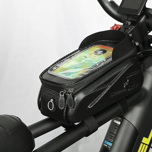 Mantenha seus itens essenciais protegidos e sempre à mão com o porta-objetos impermeável da MUV Rebel. Ideal para levar celular, powerbank e outros acessórios sem preocupação com chuva ou poeira. Além disso, funciona como suporte de celular, permitindo o uso do GPS com praticidade enquanto você pedala.
