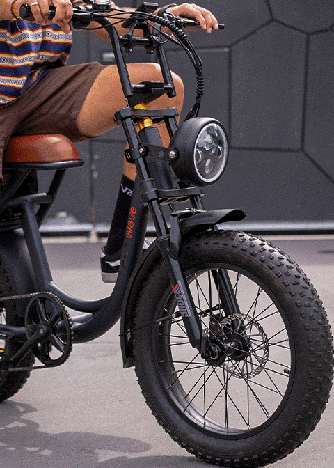 A suspensão hidráulica da MUV Wave absorve impactos e irregularidades do terreno, garantindo uma pilotagem mais suave e confortável. Perfeita para enfrentar ruas esburacadas e trajetos mais longos sem abrir mão do controle e da estabilidade.